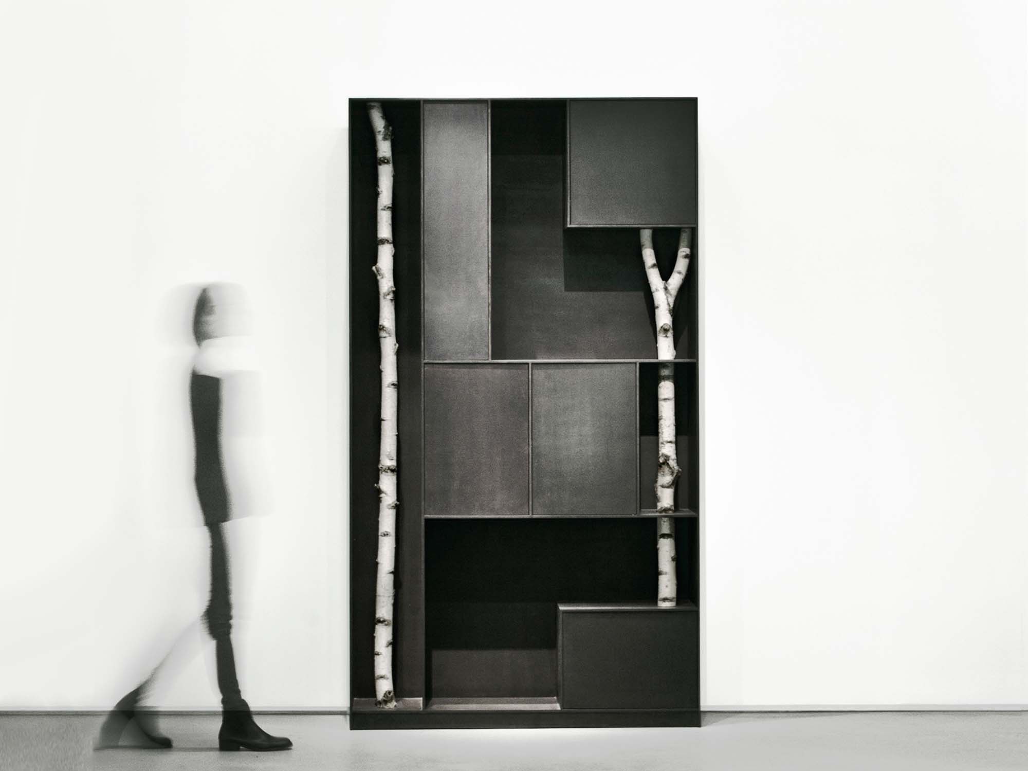 In the 1980s, Branzi turned away from the prevailing, highly-stylized aesthetic of postmodern design. The key expression of this new direction was his seminal Animali Domestici (1985-1986) series, which featured rectilinear forms intersected by unfinished logs, sticks, and wood offcuts, in an attempt to bring the artificial and natural into equilibrium.