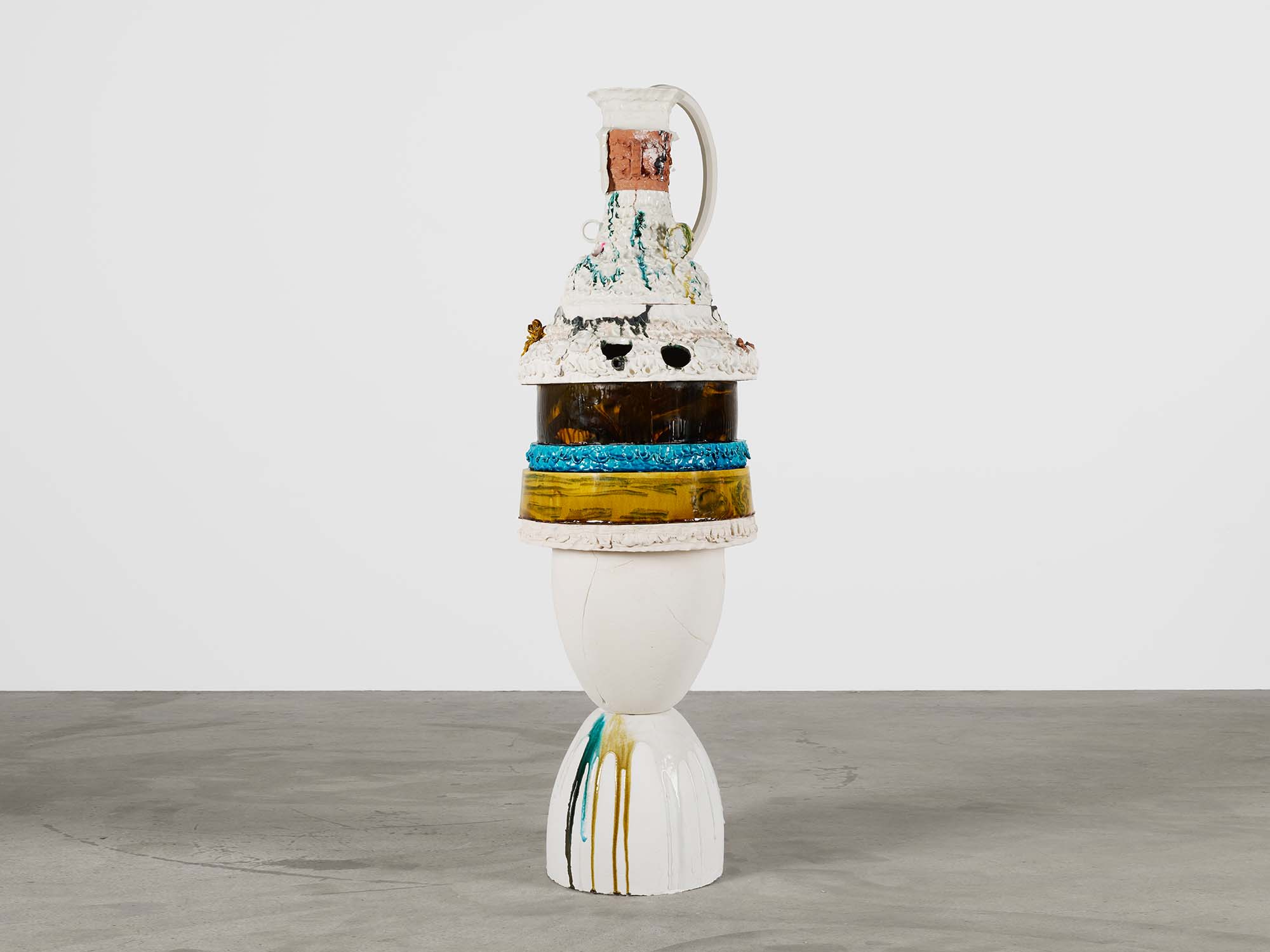 Throughout her career, Nicole Cherubini has been challenging conventions, expectations, and codified hierarchies of sculpture. Born in 1970 in Boston, she received a BFA in Ceramics from the Rhode Island School of Design in 1993 and an MFA in Visual Arts from New York University in 1998. Subverting history, Cherubini builds dysfunctional objects that undermine their traditional purpose, recasting them as new forms that simultaneously reject, exploit, and accentuate compliant beauty. The use of space, clashing, and tipping into the uncouth is political vocabulary for Cherubini. Appropriating and transgressing class signifiers of ornamentation are acts of defection. The resulting mashups are a convivium gone wild.