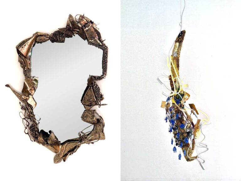 Politics aside, Bansal and Sharma obviously draw a tremendous creative vitality from the chaotic, rough-and-tumble backdrop of Makrana, which seems to be constantly, simultaneously emerging from the ground and falling into ruin. This pervasive indeterminacy is reflected in everything Studio Raw Material makes; the objects are poised in a moment of transient becoming. Despite their supreme elegance, it’s obvious that they could easily have been otherwise. This impression of radical contingency is enhanced as one engages with them. Their recent Oxide Desk, for example, suggests an ancient bridge when viewed straight on, a shallow riverbed from above. Khokhar Seat – a breakout work of 2023 that takes its name from a village near their studio – is a chair and a room divider in one, which activates the space around it with a generous, embracing presence. The composition strongly suggests an expansive landscape, but also a rippling folded textile. The perfectly round element at the top could have landed in that position serendipitously, but could also be an emblem of the sun (such a powerful daily presence in Rajasthan). A visual and functional anchor is provided by a perfectly proportioned, symmetrical round seat, heightening through contrast the intuitive collage of the surrounding back.