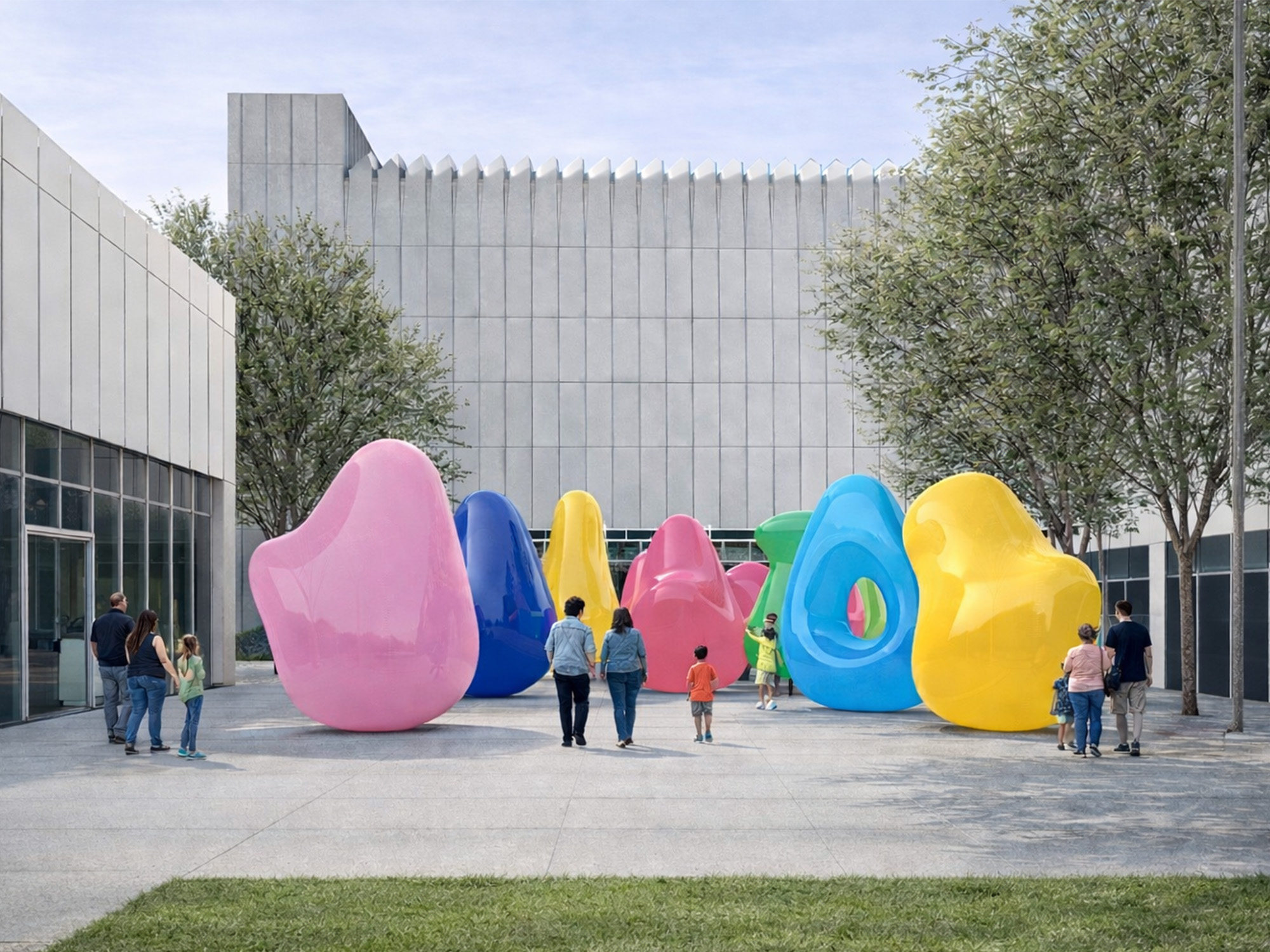 Inspired by the classic roly-poly wobbling toy, known in Chile as “mono porfiado,” this installation comprises a landscape of 14 inflatable, limber sculptures, some measuring up to 17 feet tall, and invites visitors to interact with their pliable surfaces. These sculptures will come to life through human interaction and play, transforming the Piazza with collective movement that explores collaboration and the construction of public space. When activated, the sculptures become a living metaphor for resilience, understood not as rigidity but as adaptability: the capacity to move with others, to be displaced and to return to balance through shared effort, persistence and care. Each sculpture responds to individual action while also becoming part of a larger whole, created by accumulated gestures.