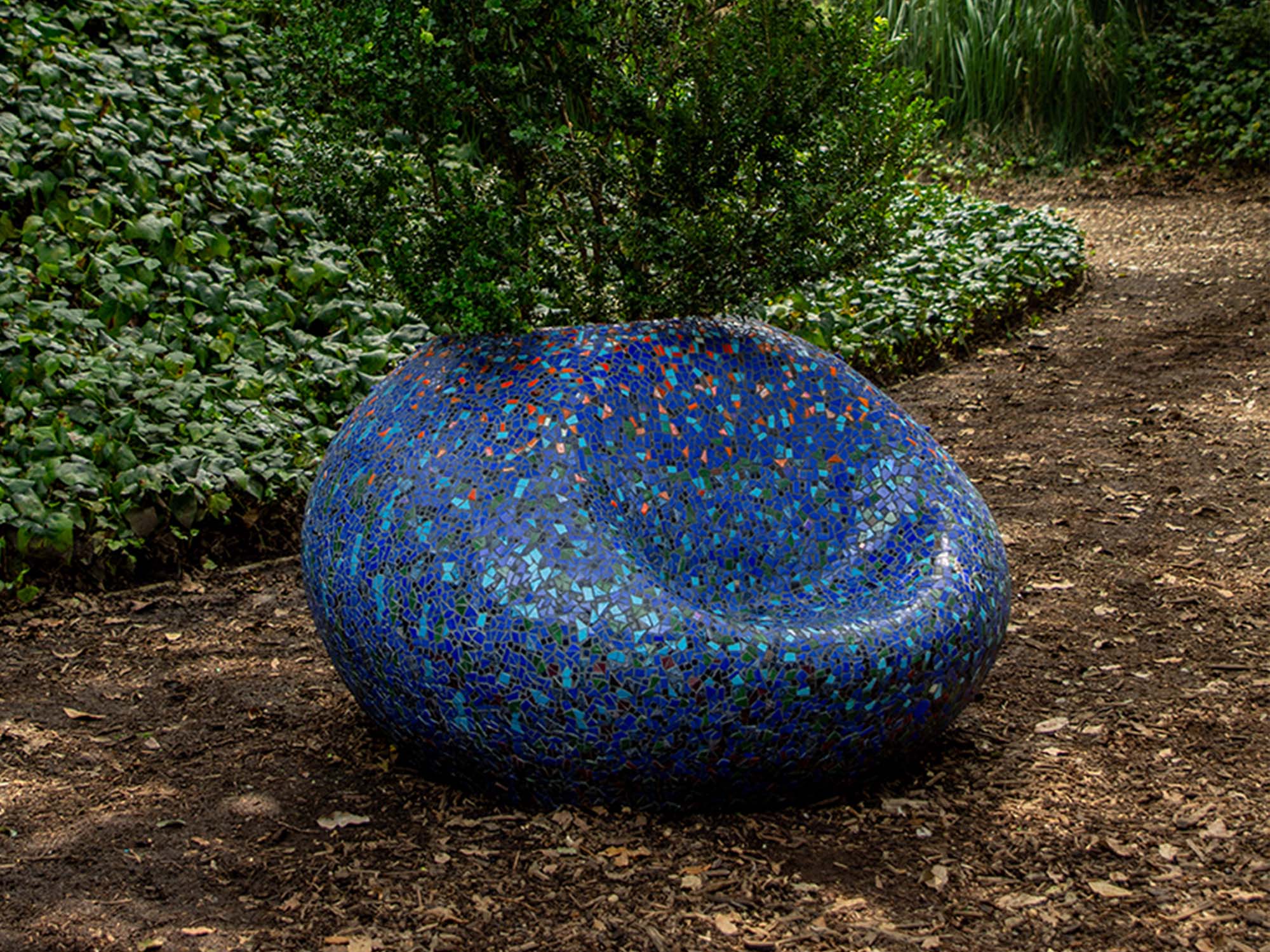 A continuation of our collaboration with the celebrated and idiosyncratic Mexican architect Javier Senosiain, Tecomate is the architect’s newest exploration, using organic forms as a way of confronting the often rigid and linear discipline of the modern environment. This large-scale planter with integrated seating is made in Senosiain’s signature reinforced concrete with vibrant mosaic tiles.