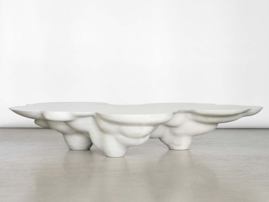Debuting in Europe, Dutch designer Joris Laarman’s recent series, Nimbus (2025), is rendered in a single block of marble and contemplates the ever-shifting shapes of clouds. For Lode I (2021), British designer Faye Toogood revisits the console archetype with a monolithic form that hints at artefacts uncovered in archaeological finds, conveying the essence of time.