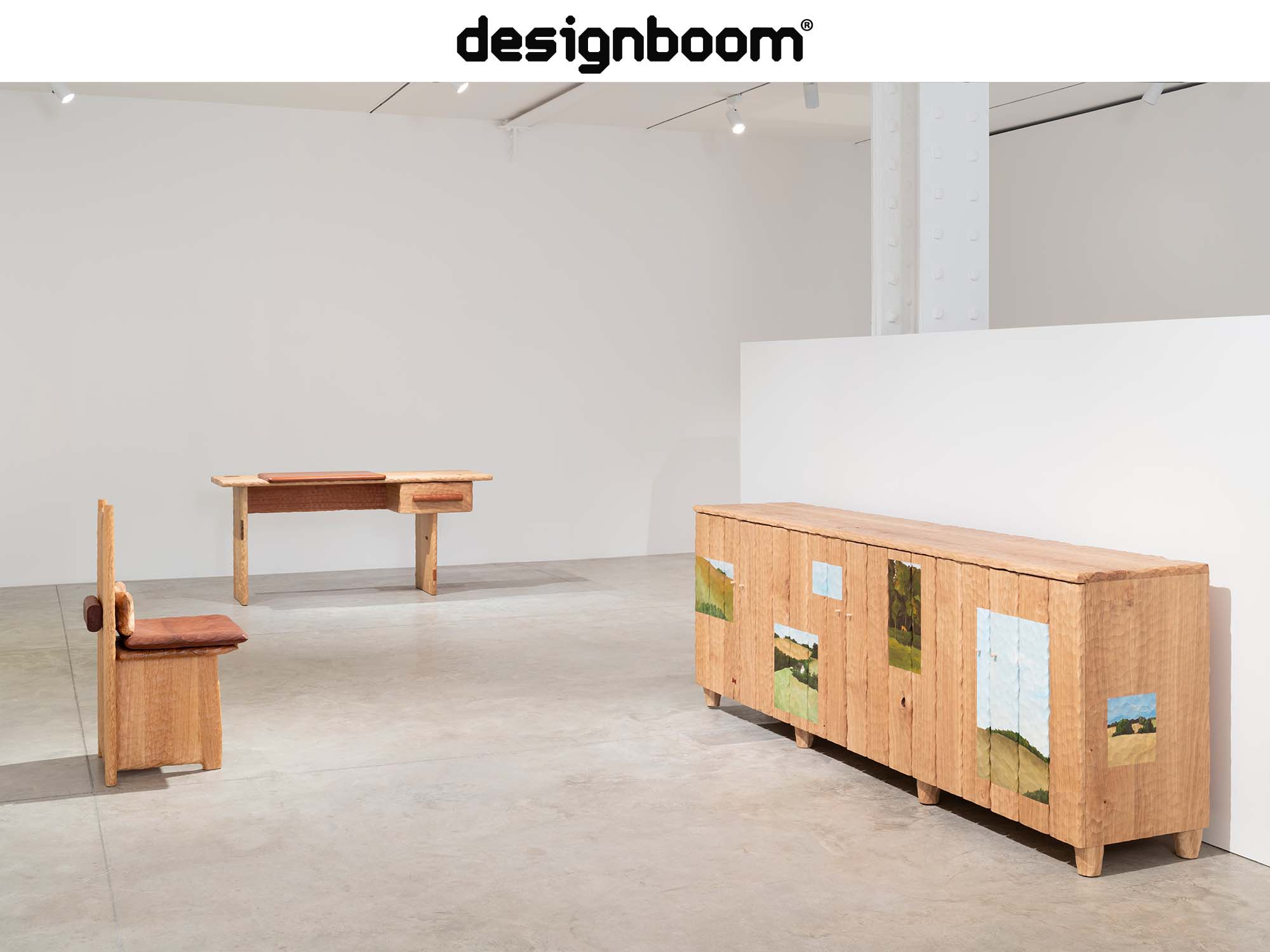 In a Landscape, the newest exhibition by Ferréol Babin at Friedman Benda, brings a group of carved wood objects into dialogue with painted surfaces and ceramic inlays. Ahead of the March 6th opening in New York, designboom spoke with Babin about the works on view, tracing the way his furniture grows from the textures and routines of his life in the French countryside.